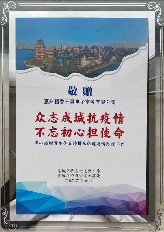 頒發(fā)單位:惠州市惠城區(qū)橋東街道黨工委、橋東街道辦事處