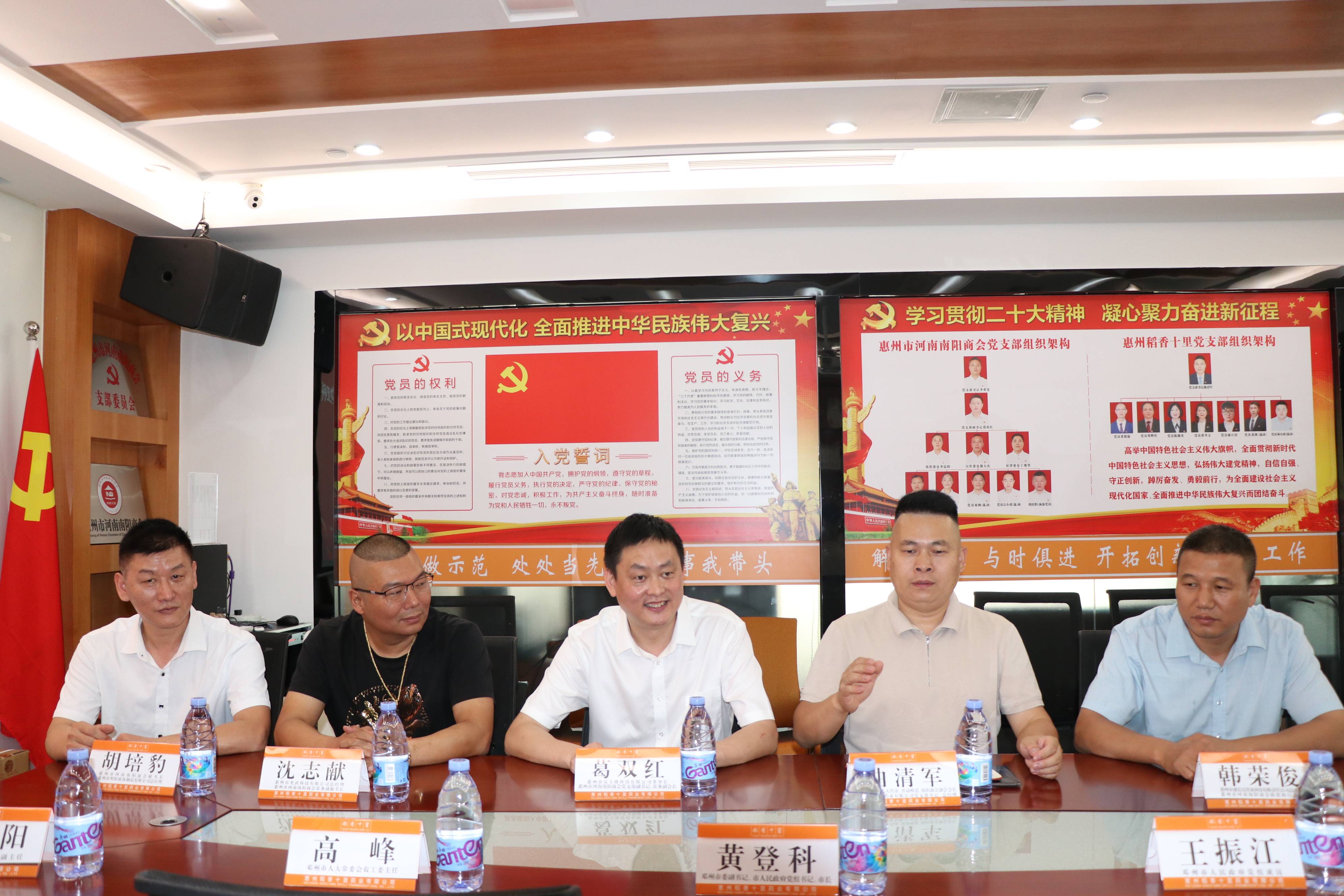 惠州市河南南陽商會輪值執行會長韓榮俊、黨支部副書記、常務副會長葛雙紅、秘書長胡培豹、常務副秘書長沈志獻等陪同考察團參觀座談。